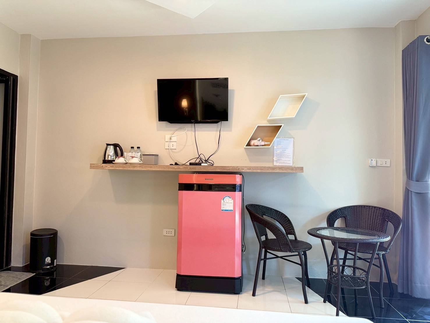 ลักษณะห้อง : ห้องพัก 1 ห้องนอน 1 ห้องน้ำ แอร์ ทีวี ตู้เย็น น้ำอุ่น
